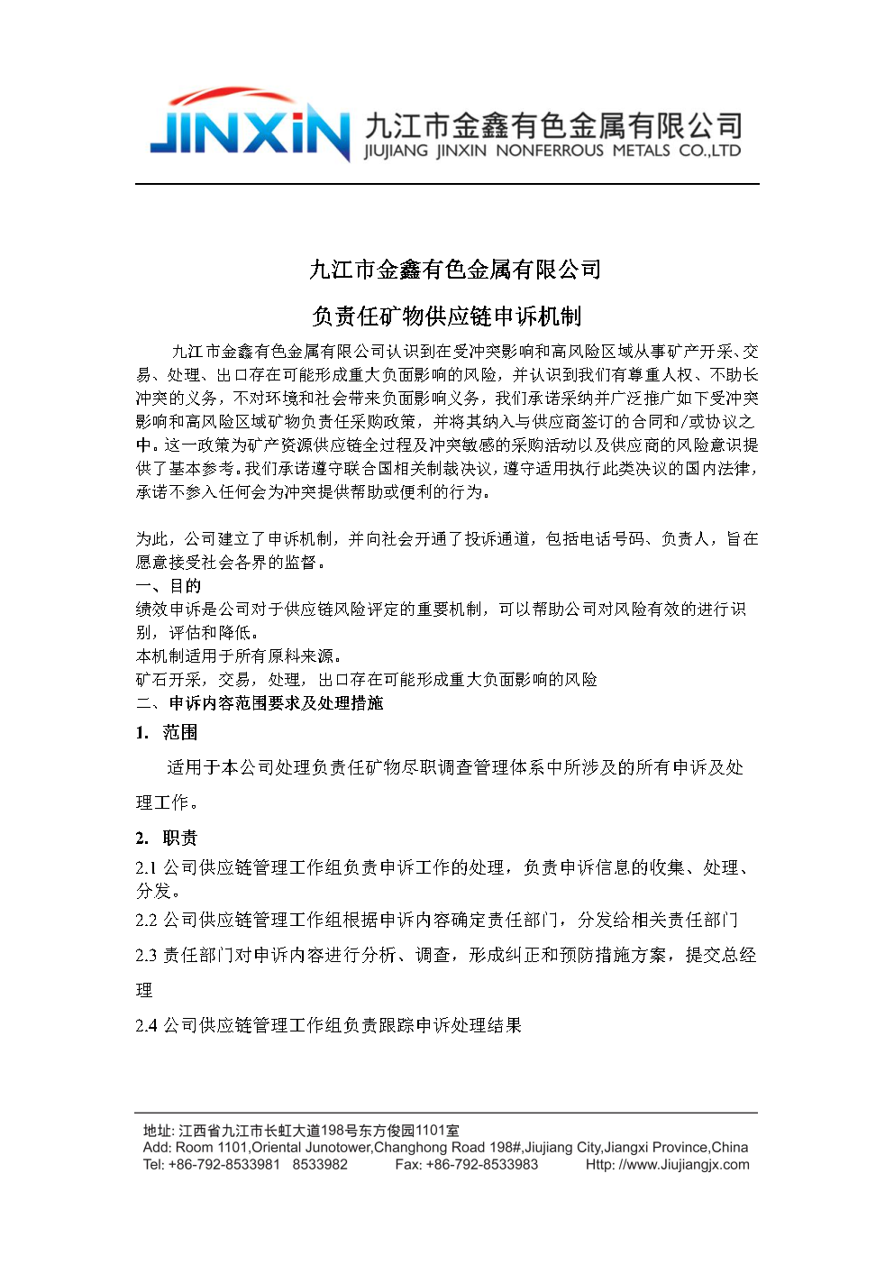 負(fù)責(zé)任礦物供應(yīng)鏈政策